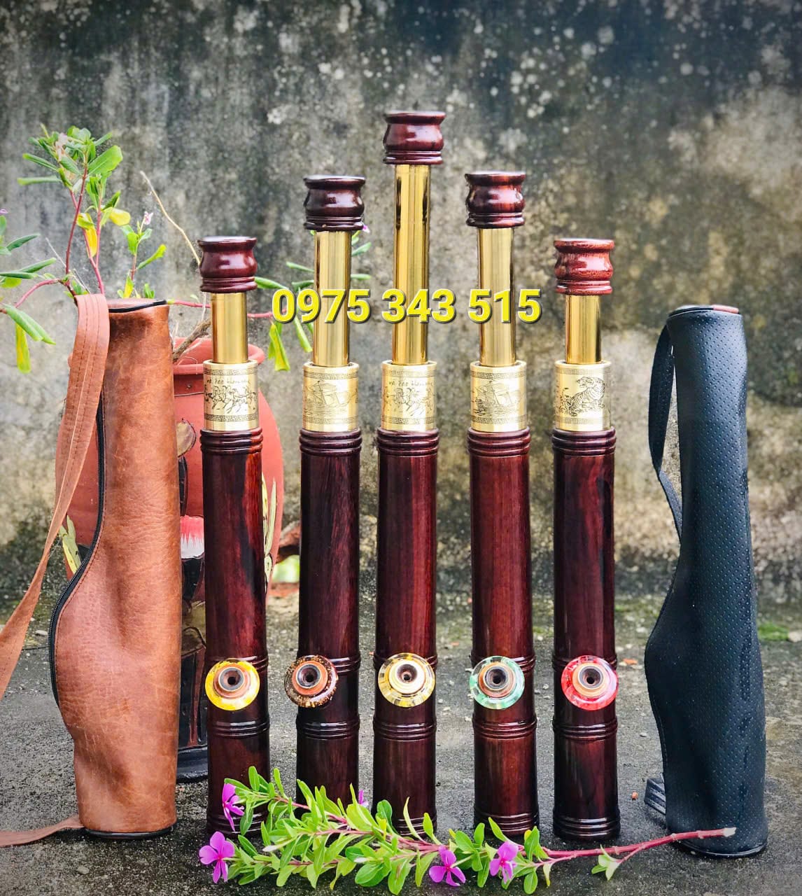 Điếu Mini : Gỗ Mun Trơn Rút Bọc Đồng 45cm Kéo Dài 65cm ( Combo )